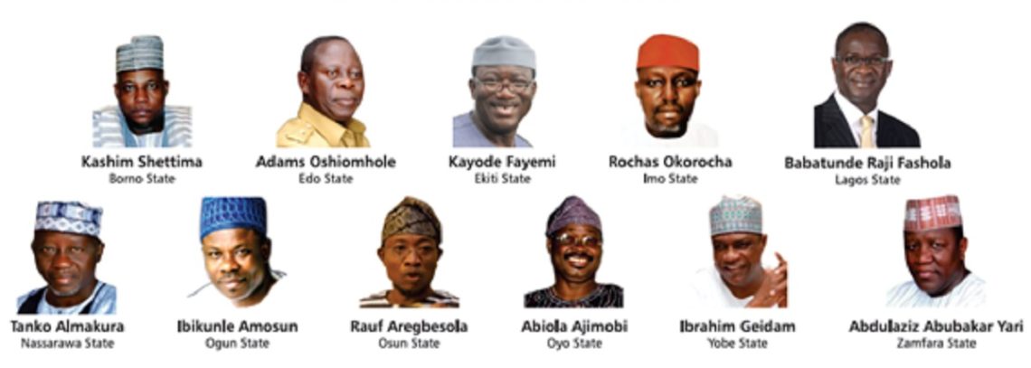 The governors include that of Lagos State Mr Babatunde Fashola , that of Rivers State, Mr. Rotimi Amaechi, that of Osun State, Ogbeni Rauf Aregbesola , his counterpart in Oyo State, Abiola Ajimobi , his colleague in Nasarawa State, Mr. Tanko Al-Makura , that of Ekiti State, Dr Kayode Fayemi and that of Imo State, Owelle Rochas Okorocha . Others are Senator Ibikunle Amosun of Ogun and Comrade Adams Oshiomhole of Edo State.